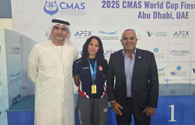 سارة بن أحمد تُتوّج بالذهب للمرة الثانية في كأس العالم للسباحة بالزعانف بأبوظبي