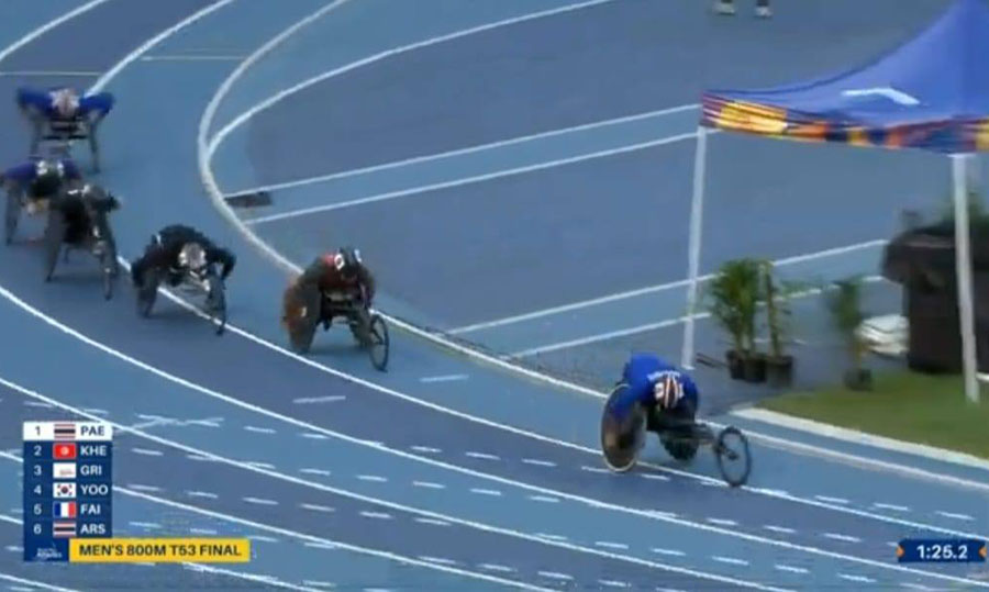 حقق البطل البارالمبي التونسي محمد نضال الخليفي، يوم الجمعة 03 أكتوبر 2025، الميدالية الفضية في نهائي سباق 800 متر كراسي T53، محطّما الرقم القياسي الإفريقي بتوقيت 1:37.15دق ، خلال الفترة المسائية لليوم السابع من بطولة العالم بارا-ألعاب القوى، المقامة حاليا في نيودلهي الهند.