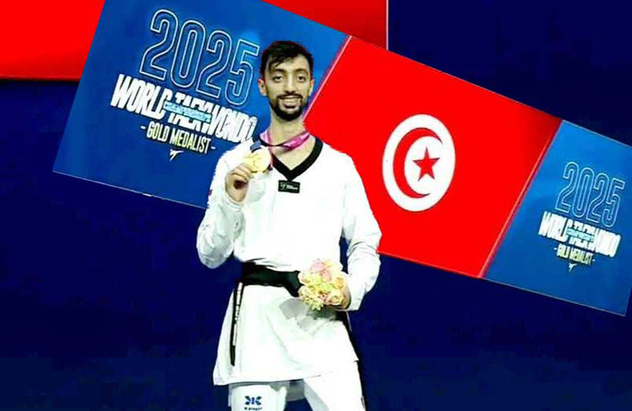 حقّق البطل الأولمبي التونسي محمد خليل الجندوبي، إنجازاً تاريخياً جديداً، يوم السبت 25 أكتوبر 2025، بعد تتويجه بالميدالية الذهبية في وزن -63 كغ، خلال بطولة العالم للتايكواندو، المقامة حالياً في مدينة ووشي الصينية، وذلك عقب انسحاب منافسه الإيراني محمد حاجي موساني، من منافسات الدور النهائي لوزن أقل من 63 كغ، بسبب الإصابة.